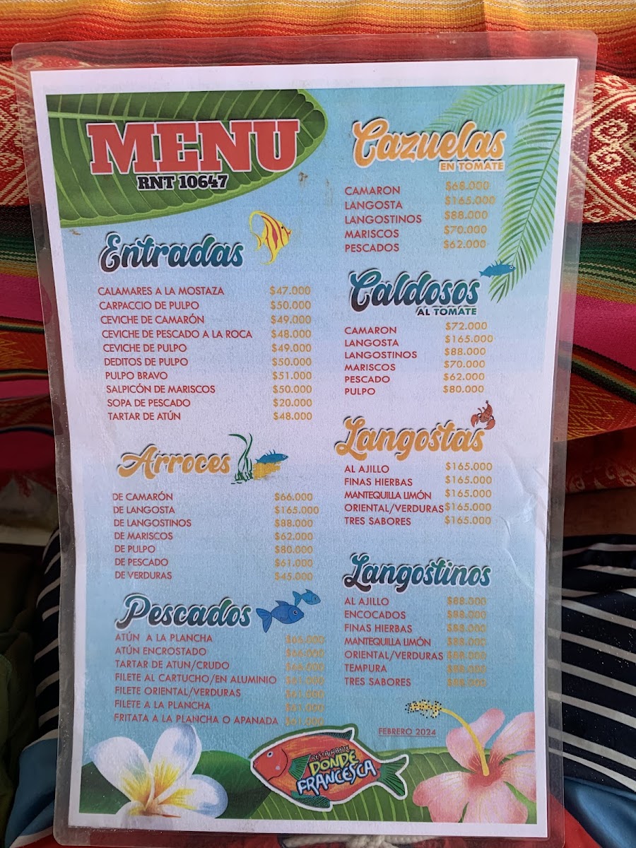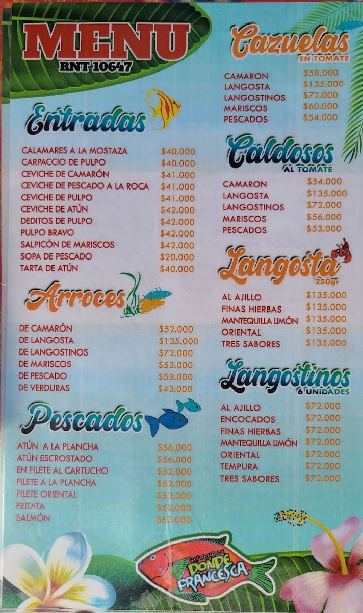 Welcome to Donde Francesca, a culinary gem nestled in the stunning locale of San Andrés, Colombia. Renowned for its captivating beach bar ambiance and breathtaking views, this restaurant has quickly become a must-visit spot for both locals and tourists. The menu highlights fresh and delicious seafood, with standout dishes like their langostas served with a trio of zesty salsas and a delectable tuna tartar.